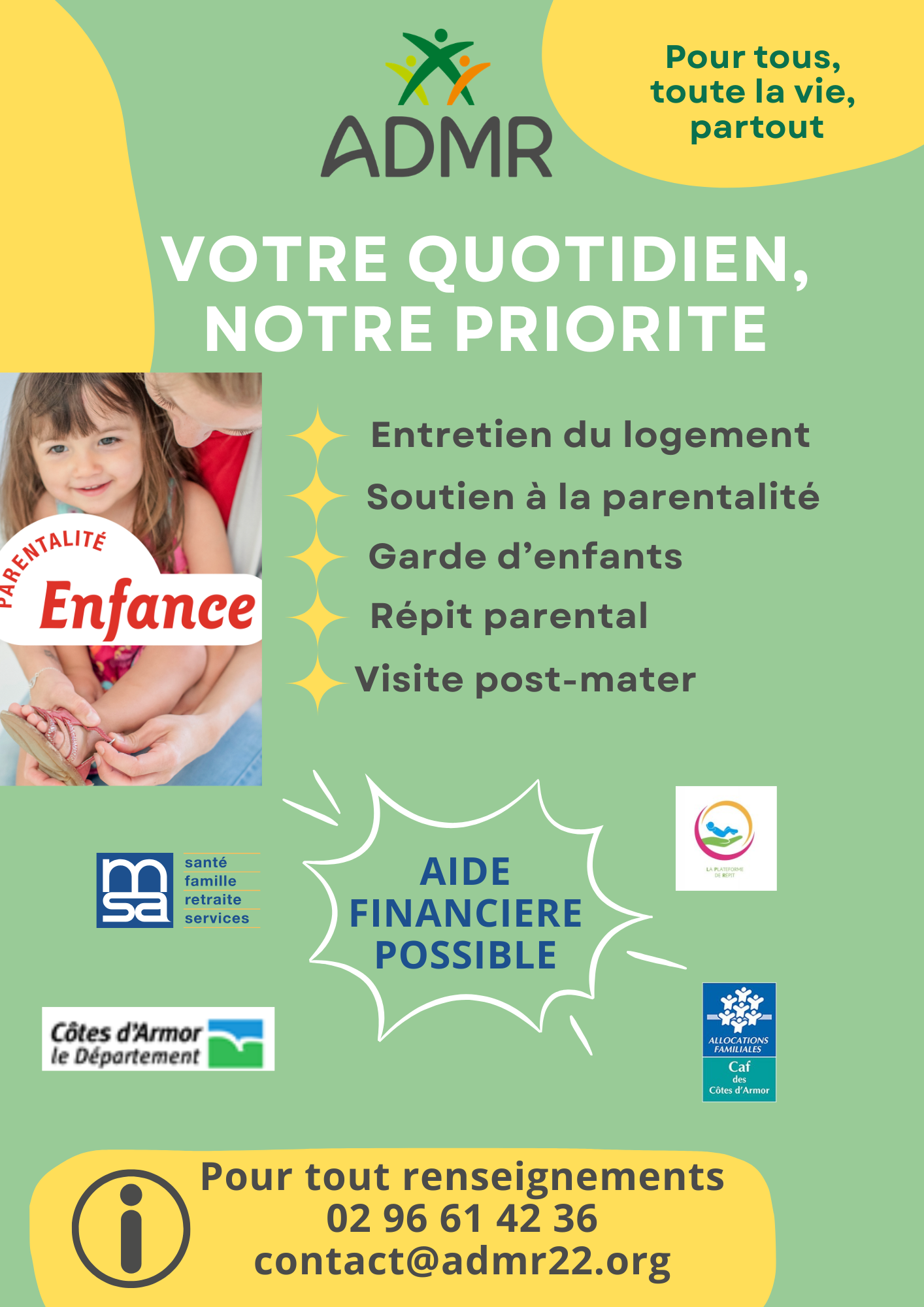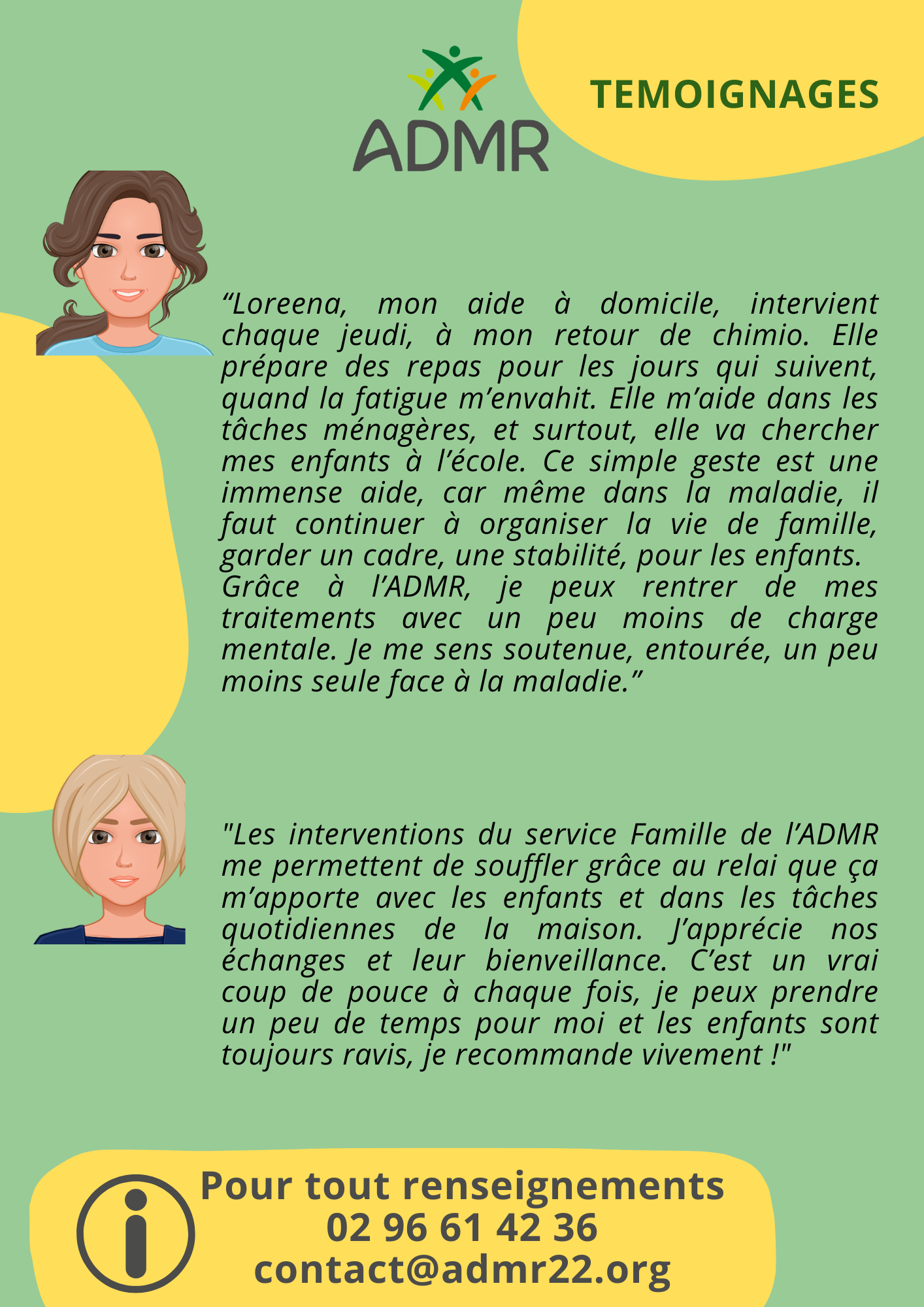 L'ADMR propose de nombreux services répartis en quatre pôles :