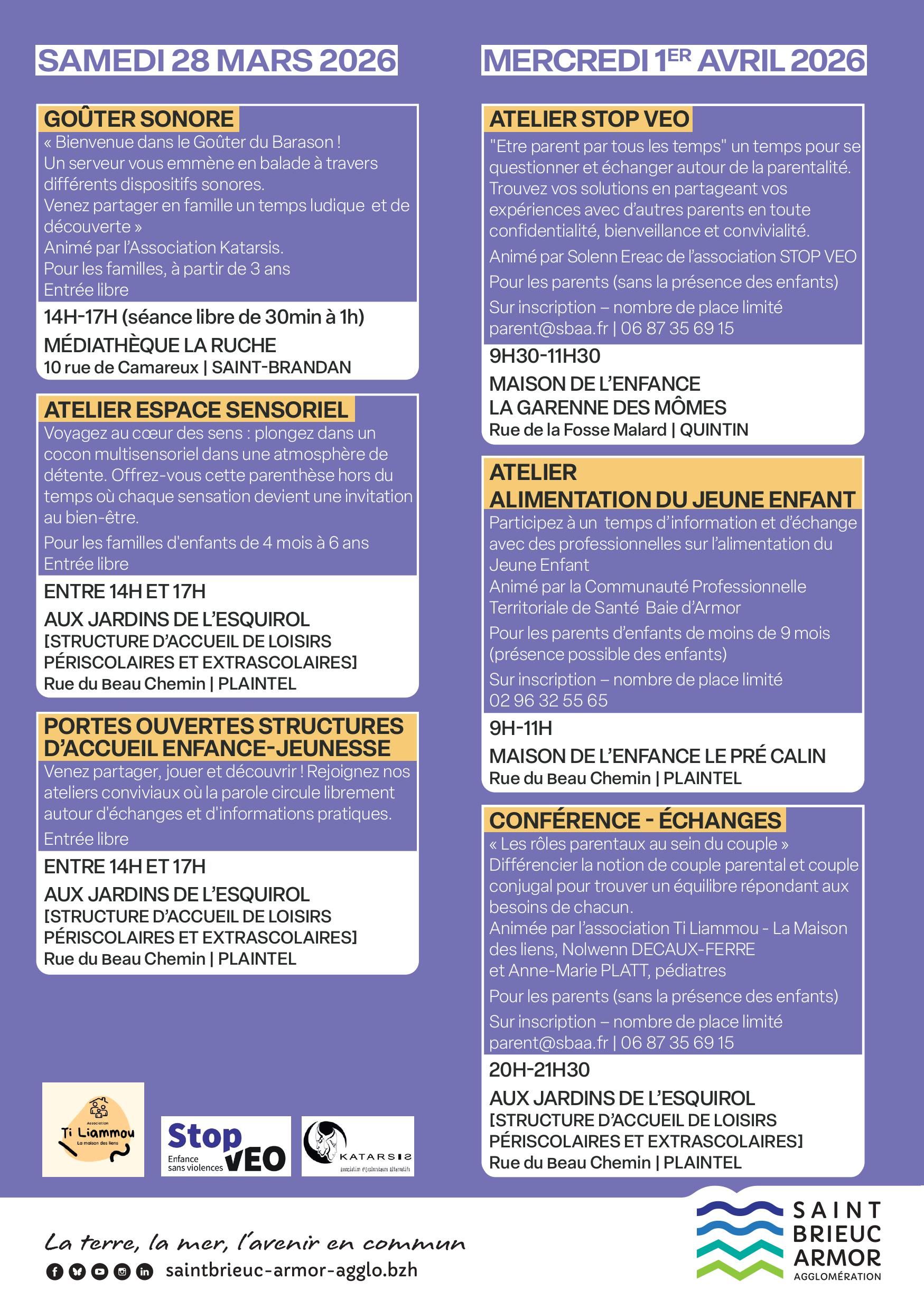 Contacter la Direction Santé, Familles, Proximité de Saint-Brieuc Armor Agglomération https://www.saintbrieuc-armor-agglo.bzh/information/actualites/2-jours-danimations-autour-de-la-parentalite-5666