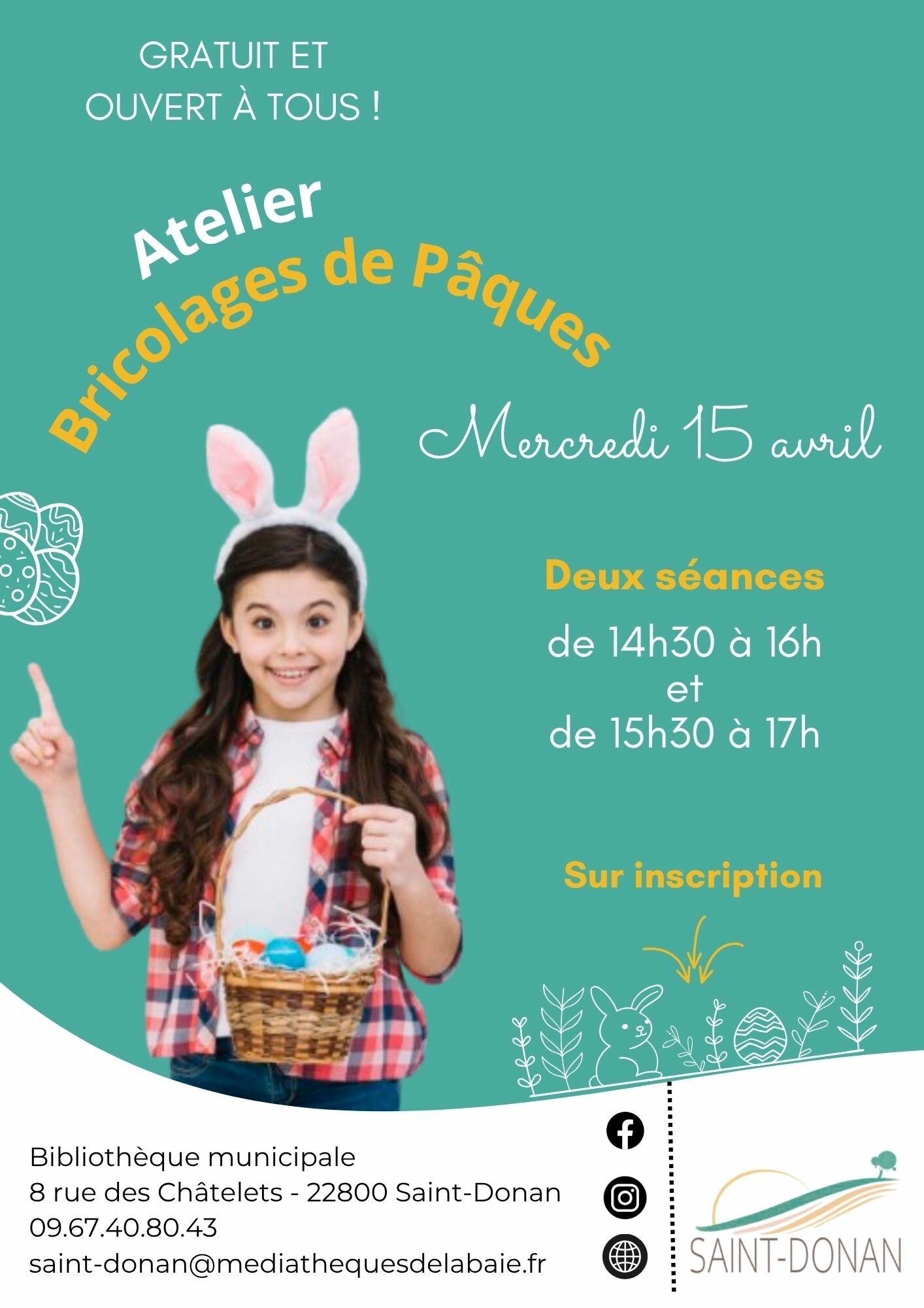 par téléphone : 09-67-40-80-43 (les mercredis et samedis de 10h30 à 12h30) ou par mail : saint-donan@mediathequesdelabaie.fr