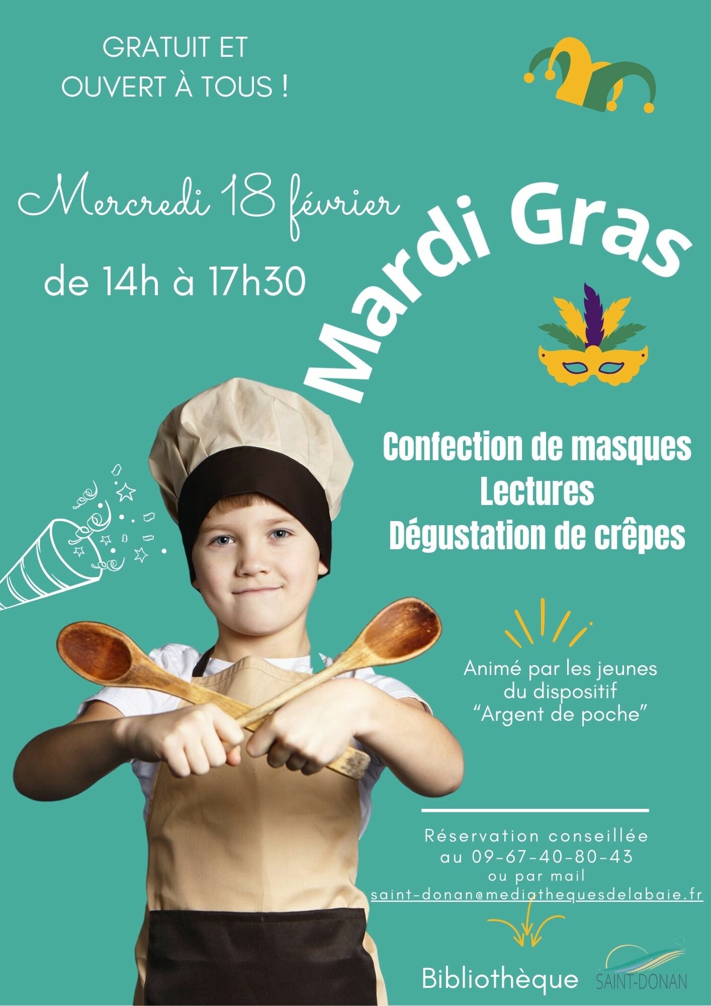 Mercredi 18 février de 14h à 17h30 - Animation Mardi-Gras à la Bibliothèque