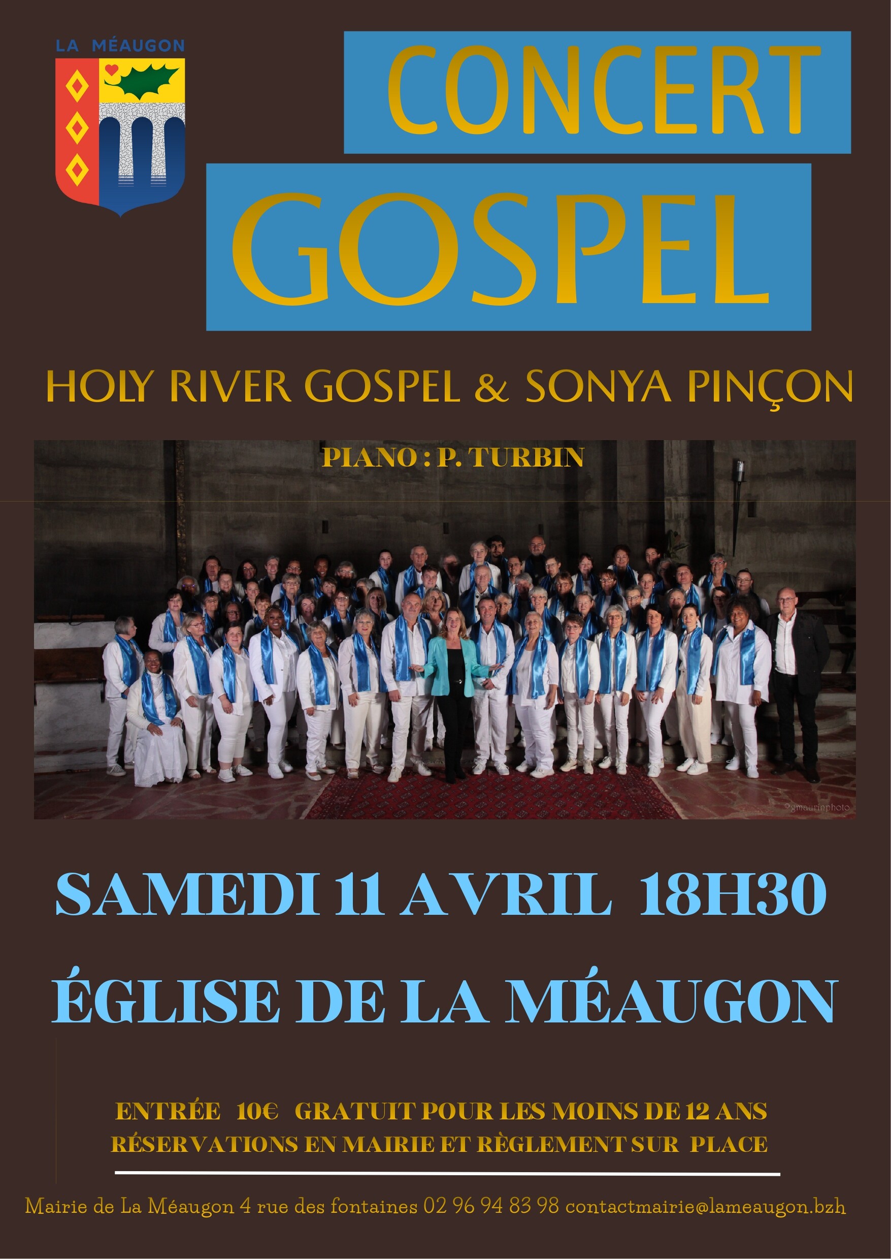 Eglise de la MéaugonEntrée 10€, gratuit pour les moins de 12 ansRéservations en mairie et règlement sur placeContact : 02.96.94.83.98 / contactmairie@lameaugon.bzh
